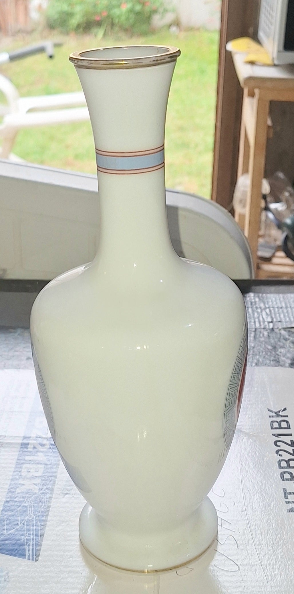 - Découvrez ce magnifique vase vintage en opale, une pièce d'occasion authentique mesurant environ 25 cm de hauteur.